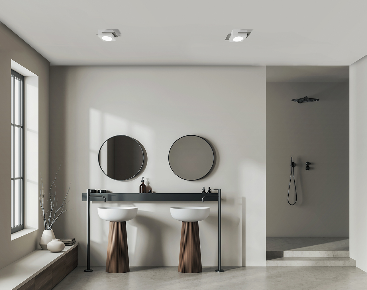 Deckenleuchte aus Gips mit Quarzgrau (RAL 7039) lackiertem Metallelement. Ausgestattet mit GX53-Lampenfassung.