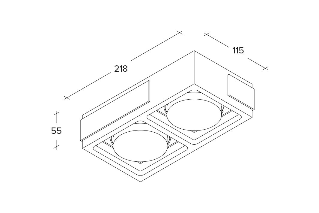 Deckenleuchte aus Gips. Aluminiumteile mit schwarzer Oberfläche. Ausgestattet mit zwei GX53-Fassungen.