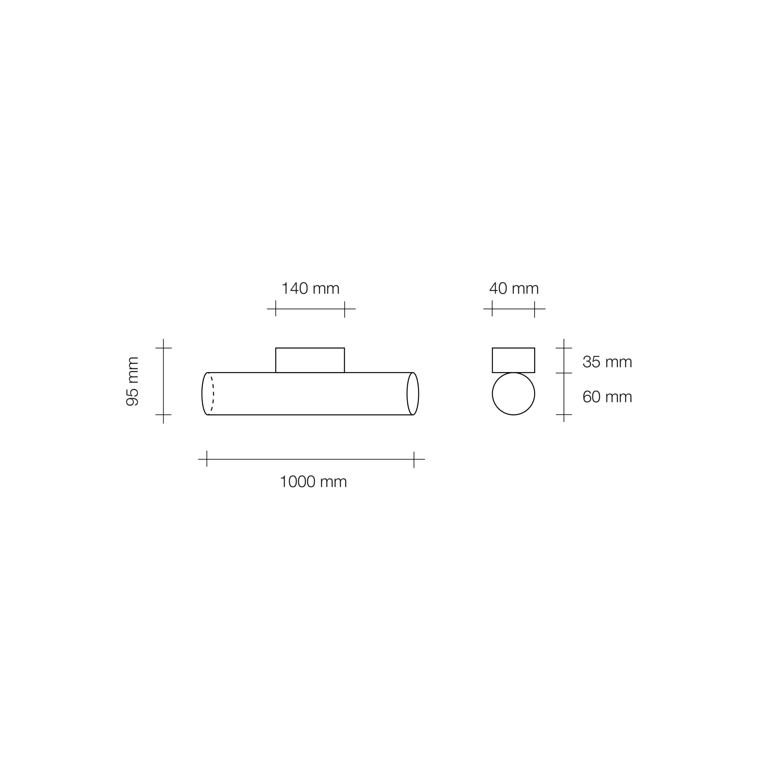 Opal polymeric wall/ceiling lamp. White painted metal base with built-in power supply. Grey plastic end caps.