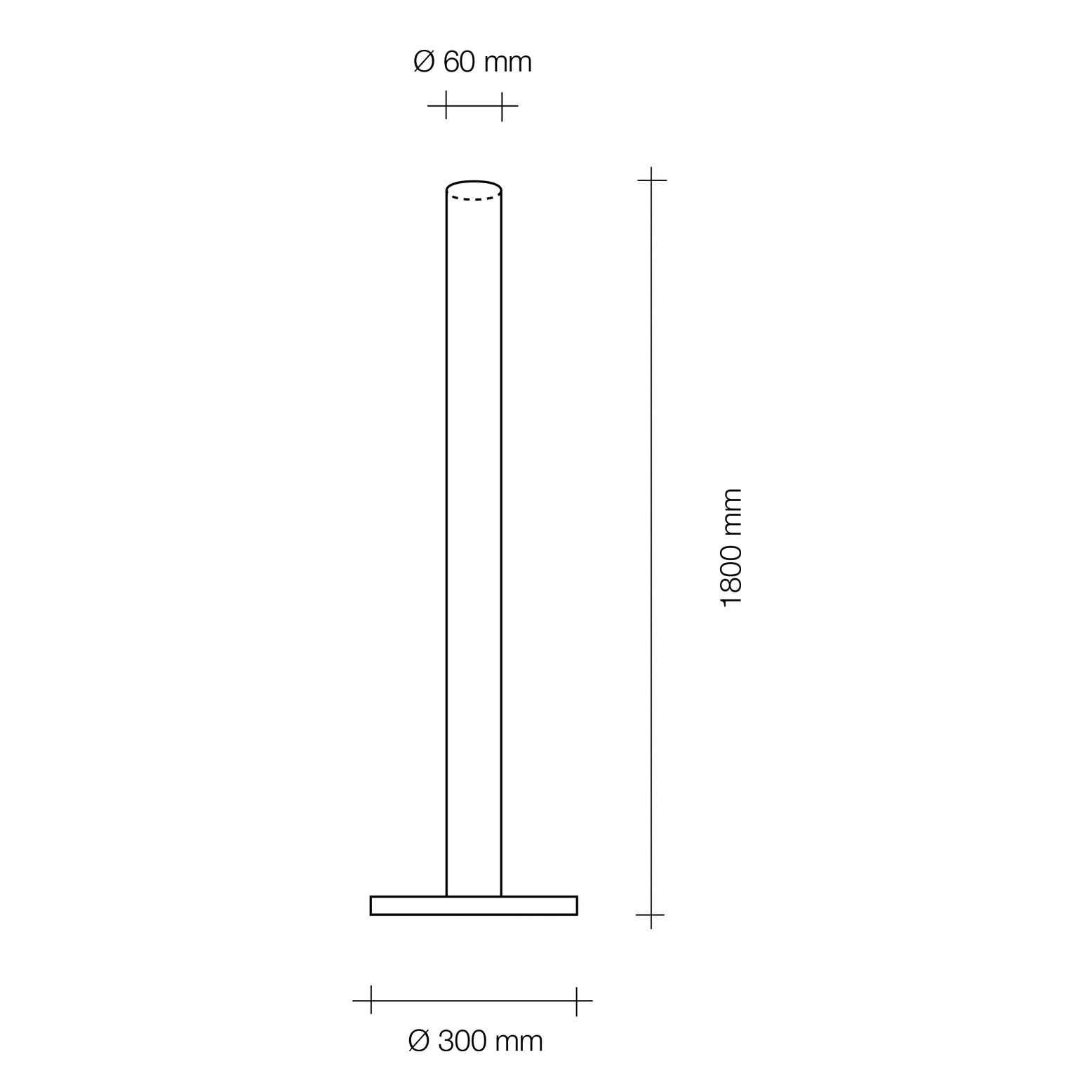 Opal polymeric floor lamp. White painted metal base with built-in dimmable power supply. Grey plastic end caps.