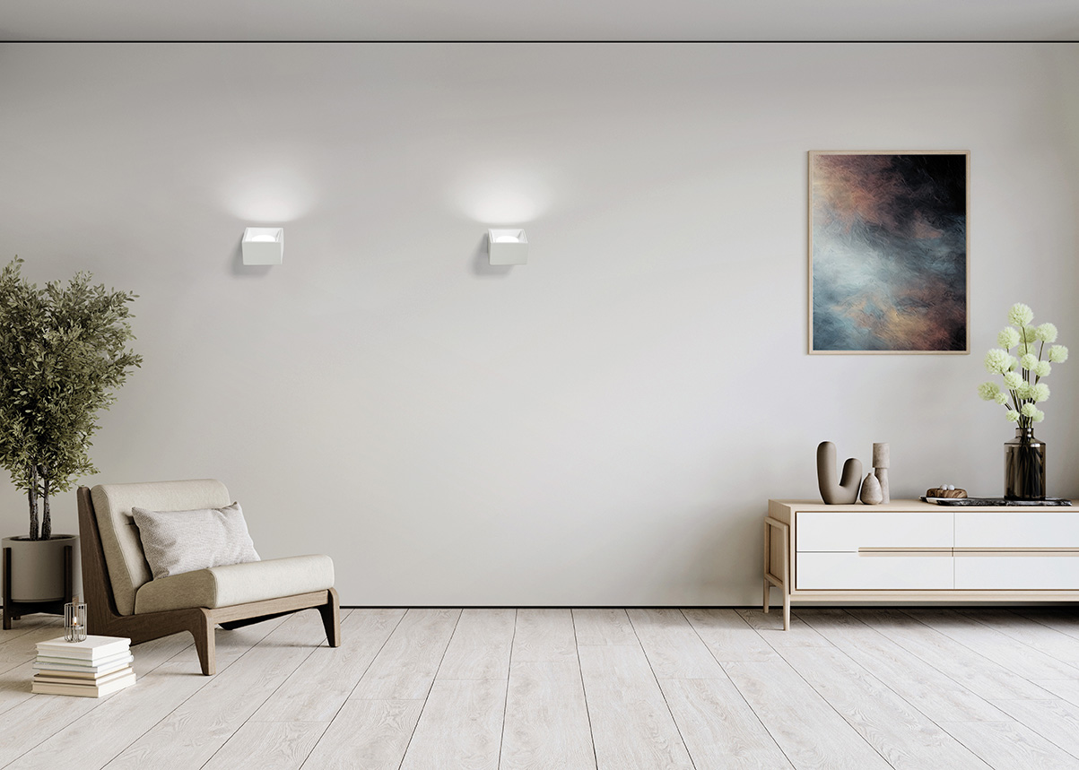Plaster wall lamp for indirect lighting. Matte white aluminium element. Equipped GX53 lamp holder.