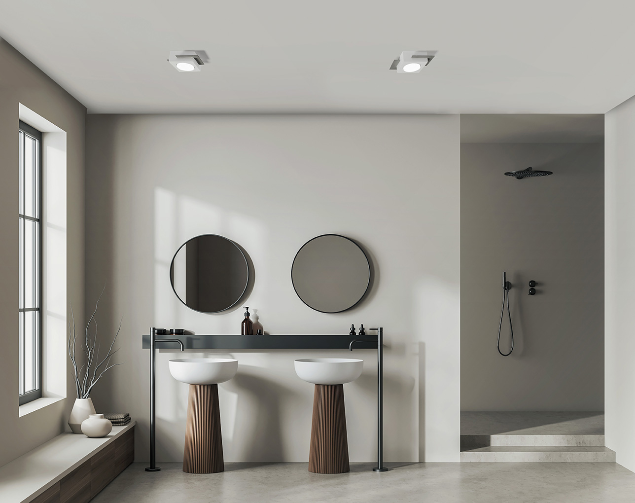 Plaster ceiling lamp with Quartz Grey (RAL 7039) painted metal element. Equipped with Gx53 lamp holder.