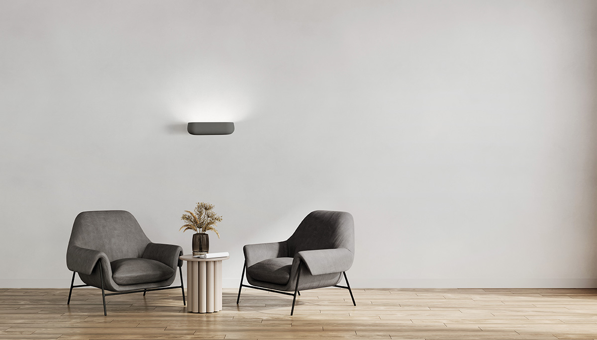 Plaster wall lamp in Quartz Grey (RAL7039). Equipped with 3 x Gx53 lamp holders.