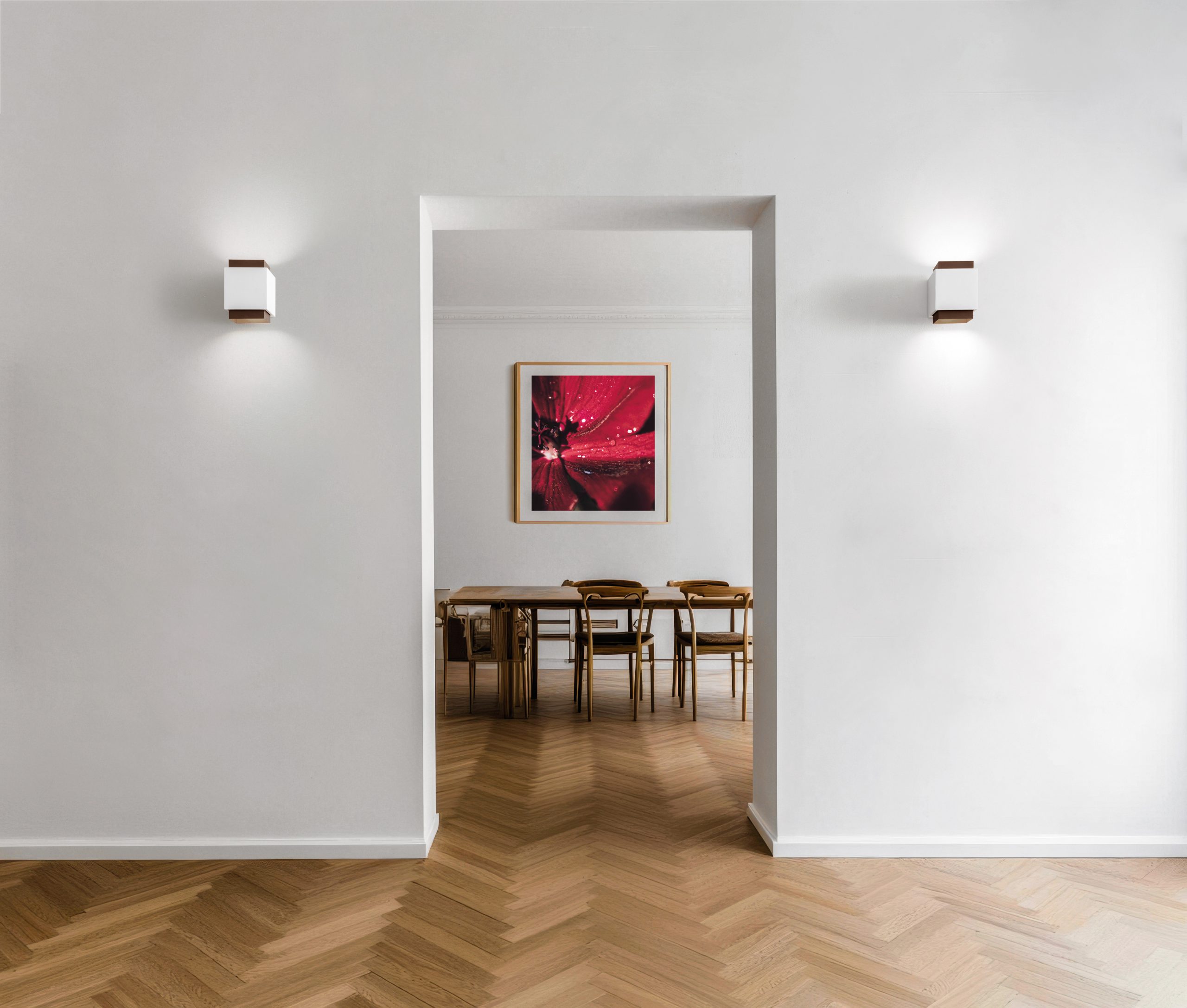 Plaster wall lamp. Bronze satin finish aluminium elements. Equipped with two GX53 lamp holders