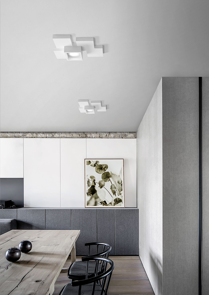 Lampada da soffitto in gesso. Dotata di portalampada GX53.