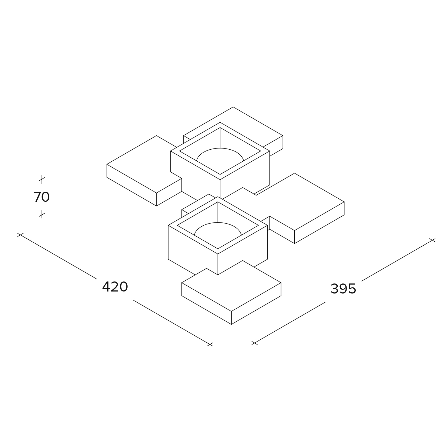 Lampada da soffitto in gesso. Dotata di due portalampada GX53.